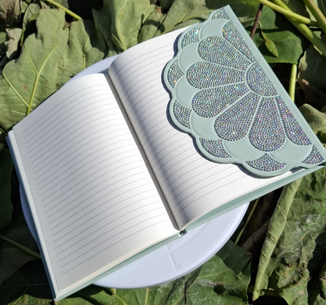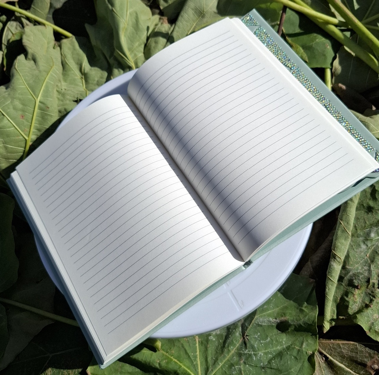 Ligotavý riadkovaný zošit veľkosti A5 s magnetickým zapínaním pri zatvorení.